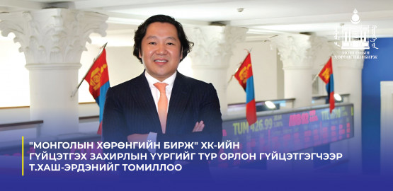 "МОНГОЛЫН ХӨРӨНГИЙН БИРЖ" ХК-ИЙН ГҮЙЦЭТГЭХ ЗАХИРЛЫН ҮҮРГИЙГ ТҮР ОРЛОН ГҮЙЦЭТГЭГЧЭЭР Т.ХАШ-ЭРДЭНИЙГ ТОМИЛЛОО