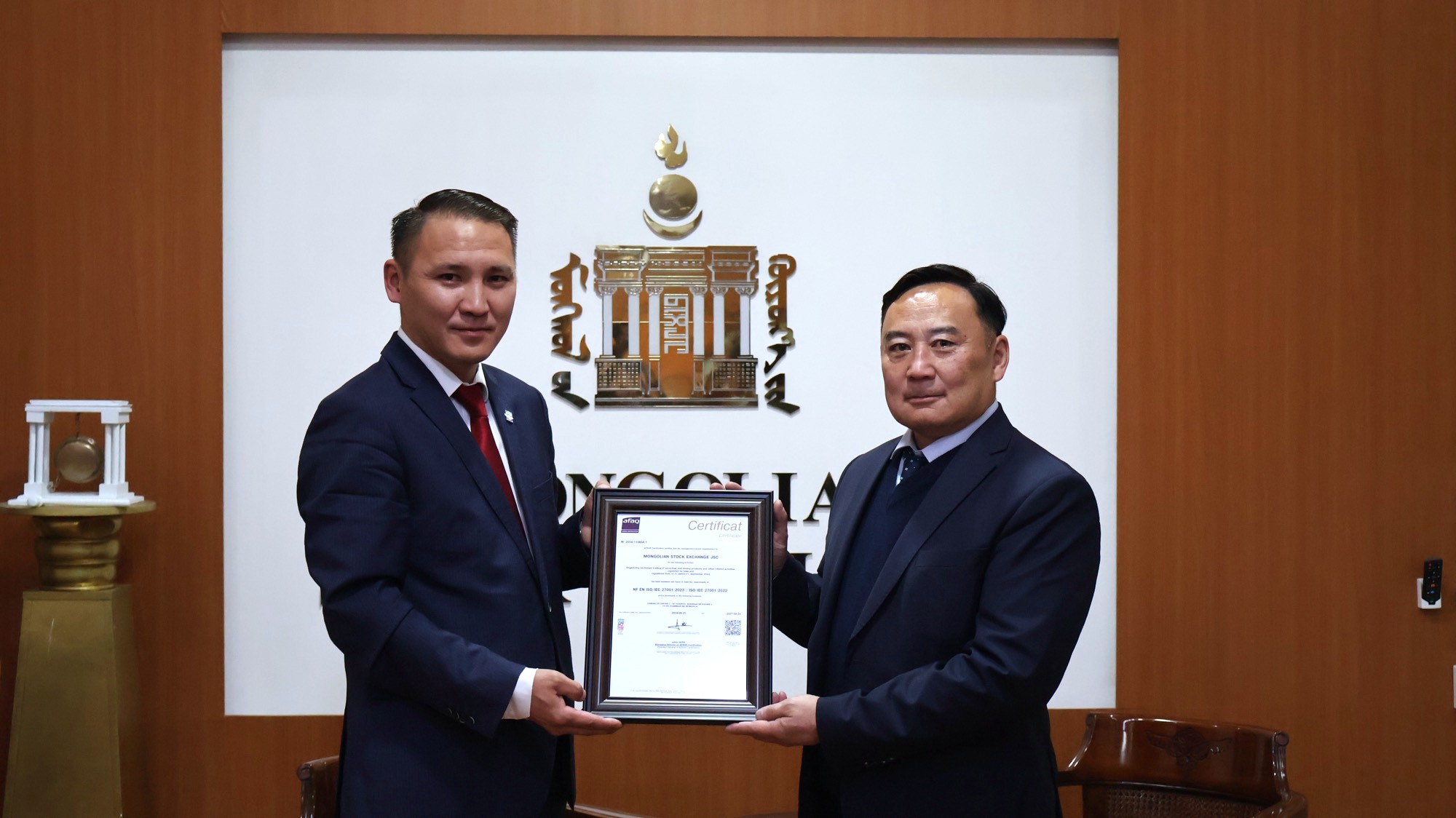 “Монголын хөрөнгийн бирж” ХК нь уул уурхайн бүтээгдэхүүний биржийн болон үнэт цаасны арилжаа эрхлэх үйл ажиллагаандаа Мэдээллийн аюулгүй байдлын менежментийн ISO/IEC 27001:2023 / ISO/IEC 27001:2022 стандартыг 2024 онд нэвтрүүлж, баталгаажуулалтын гэрчилгээг гардан авлаа.