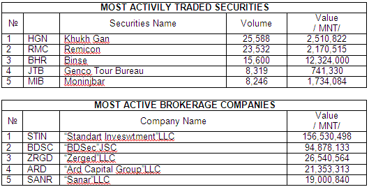 As of 16 January 2015, market capitalization was MNT1,412,364,991,870 which indicated increase of 0.07% and Top-20 index increased 0.66 % from previous week respectively.