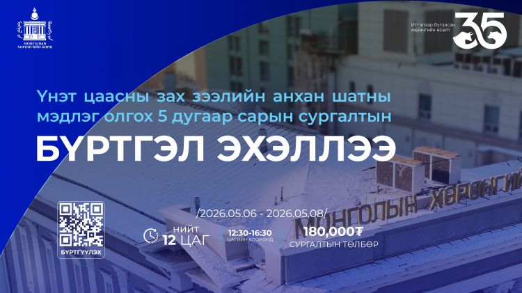Сургалтыг 2026 оны 5 дугаар сарын 6, 7, 8-ны өдрүүдэд биржийн сургалт мэдээллийн төв /MSE hall/-д зохион байгуулах ба санхүү, үнэт цаасны зах зээлд олон жил ажиллаж буй мэргэжлийн байгууллагын удирдлага, мэргэжилтнүүд нийт 12 цагийн сургалтыг удирдан явуулж, онол, практик хослуулан зохих мэдлэг олгодгоороо онцлог, давуу талтай юм.